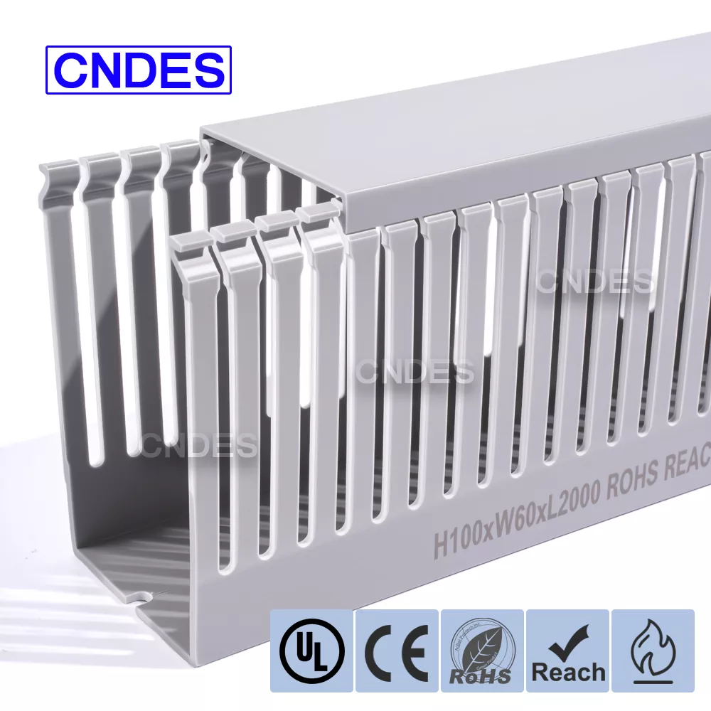 정밀 슬롯 - 정밀 홈 가공 – 전기 패널용 품질 100×60 PVC 덕트는 균일한 홈 디자인을 특징으로 하여 케이블이 어느 위치에서든 깔끔하게 빠져나갈 수 있습니다. 맞춤형 구멍 패턴은 옵션으로 제공됩니다.