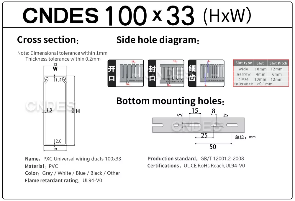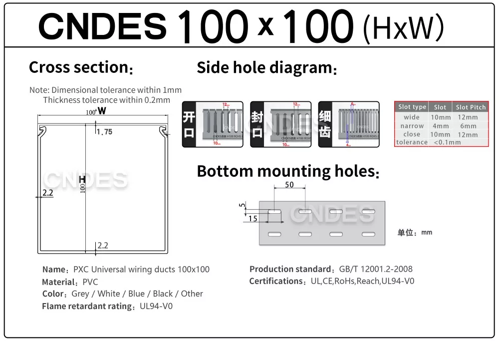 CNDES는 24년의 경험을 가진 전문 케이블 트레이 제조업체로서 맞춤형 100mm 높이 오픈 슬롯 PVC 인클로저 배선 덕트 생산을 전문으로 합니다. 여기서는 100mm 높이의 케이블 트레이 시리즈 제품을 소개하겠습니다.