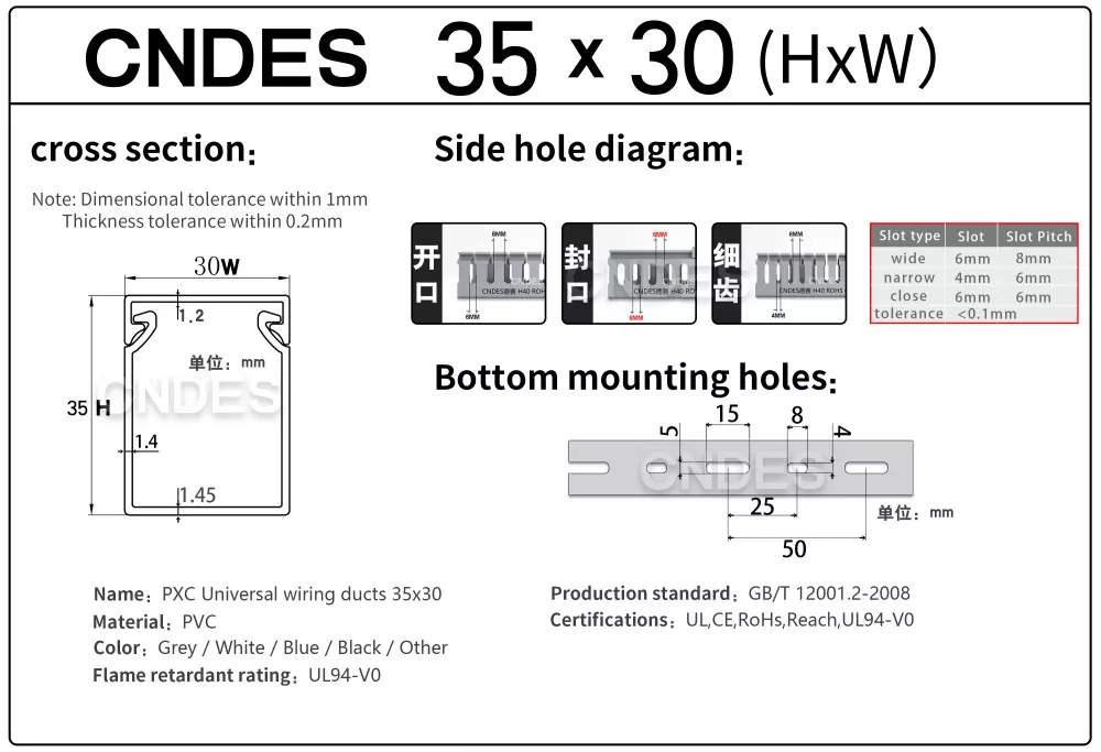 여기서는 35*25, 35*30, 35*35,35*40을 포함한 35mm 높이 배선 트렁킹을 소개합니다.