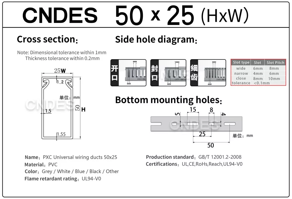 고품질 PVC 원료로 제작되어 환경 친화적이고 난연성이며 고강도 물리적 특성을 가지고 있습니다. 우리 공장에서 CNDES 슬롯 형 PVC 전기 캐비닛 덕트를 구입하면 안심할 수 있습니다.