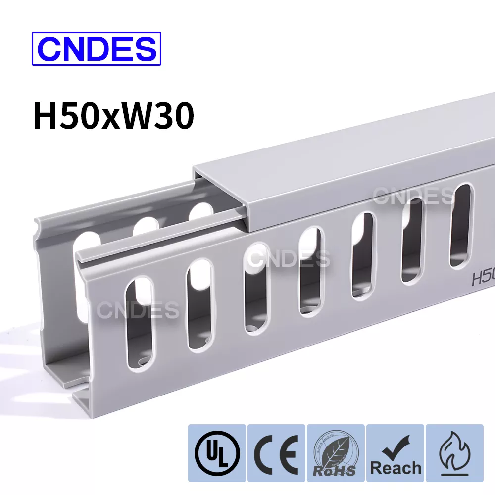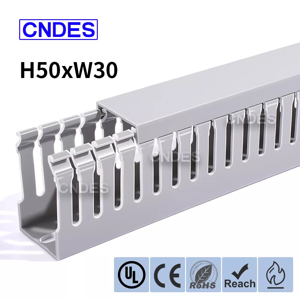 CNDES의 고품질 50×30 슬롯 PVC 케이블 정리 덕트는 소형 제어 캐비닛, 데이터 인클로저 및 장비 정션 박스와 같은 좁은 공간에서 케이블을 관리하기 위한 작고 효율적인 솔루션입니다. 이 슬림한 배선 덕트를 사용하면 설치자가 과도한 패널 공간을 차지하지 않고도 케이블을 정리, 분리 및 보호할 수 있습니다.
