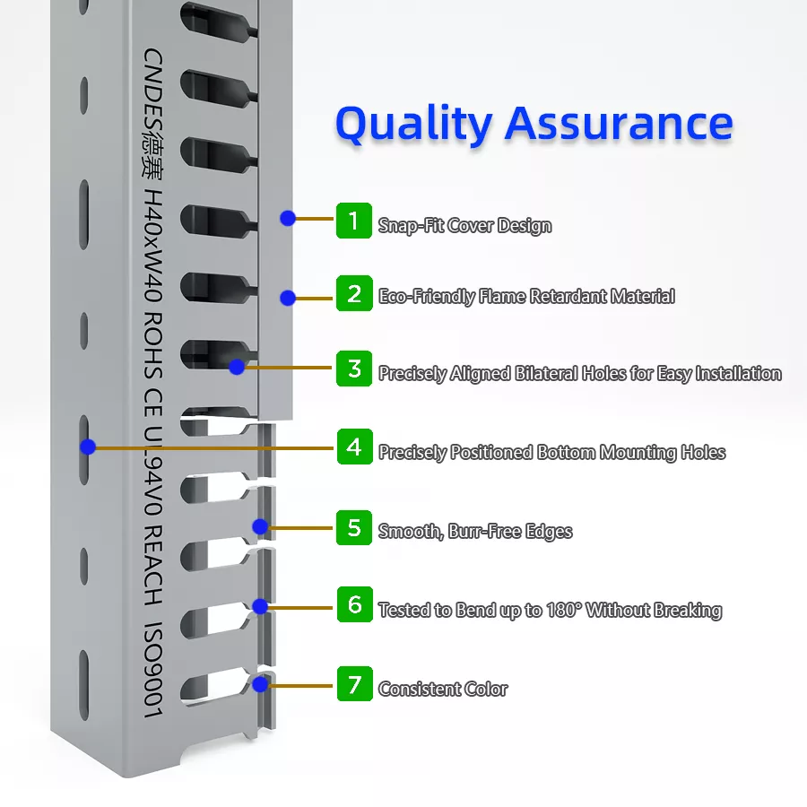 CNDES는 중국의 신뢰할 수 있는 PVC 케이블 트레이 제조업체 및 공급업체입니다. 우리는 국내외 프로젝트에 적합한 안정적인 제품 품질, 정확한 슬롯 간격 및 UL, CE, RoHS 및 REACH 표준 준수를 보장합니다.