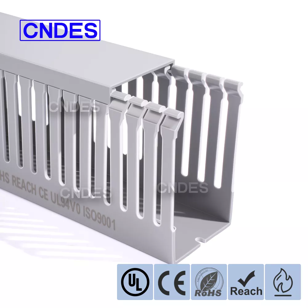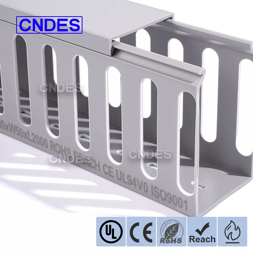CNDES는 중국에 위치한 PVC 슬롯형 케이블 트레이 전문 제조업체입니다. 여기서는 80×50 슬롯형 PVC 패널 케이블 정리함을 소개합니다. 여기서 80*50mm는 높이 80mm, 너비 50mm의 케이블 트레이를 나타냅니다.