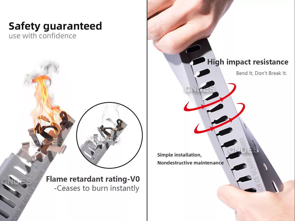 2. 산업 등급의 강도, 안전 및 신뢰성: 품질 80×80 슬롯형 PVC 배전반 배선 덕트는 두꺼운 난연성 PVC 재질(UL94-V0)으로 만들어져 견고하고 내구성이 뛰어나며 충격에 강하고 내하력이 뛰어납니다. 진동 환경에서도 케이블을 지속적으로 보호합니다.